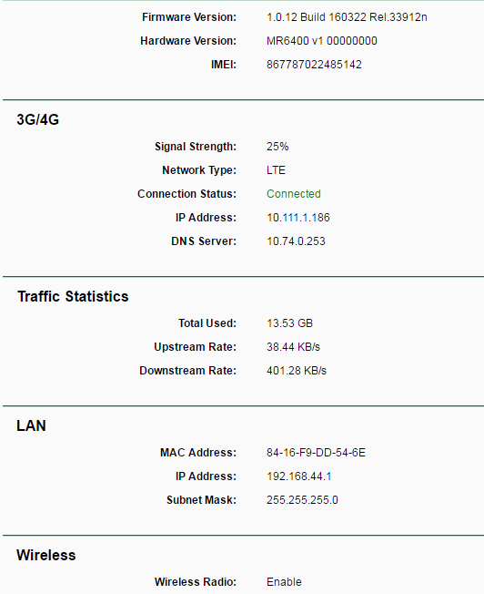 В наличии оказался в тот момент только TP-Link TL-MR6400 v1.0. Практически сразу обнаружилось что к Wi-Fi не могут подключиться два из пяти моих устройств. Версия ПО v1.0.12 сыровата и сам роутер вышел видимо недавно. Но это ничего - вставляем кабель.