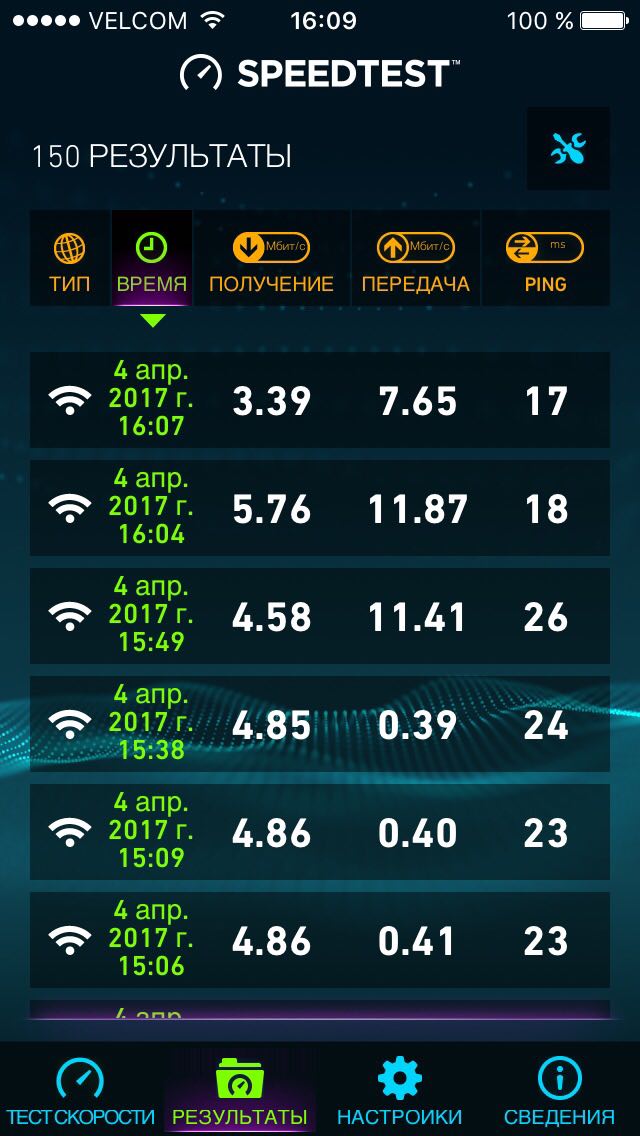 После настройки Wi-Fi по кабелю и по воздуху результаты тестирования перестали отличаться:
