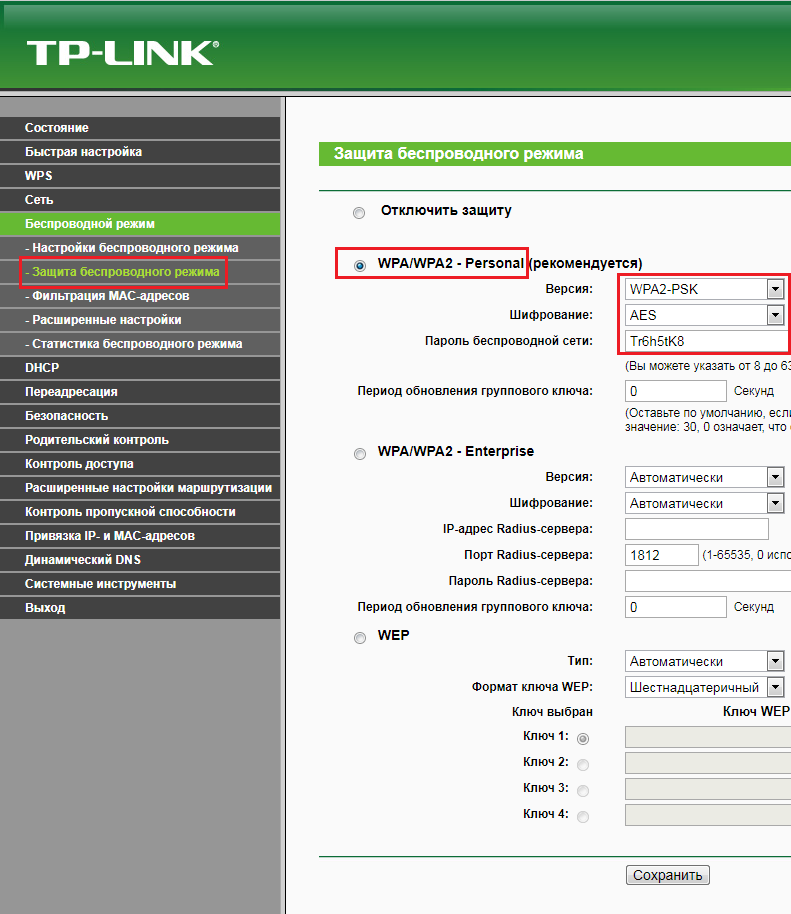 Версия WPA2 и алгоритм AES в роутере выбраны по умолчанию не случайно. Они обеспечивают максимальную секьюрность.