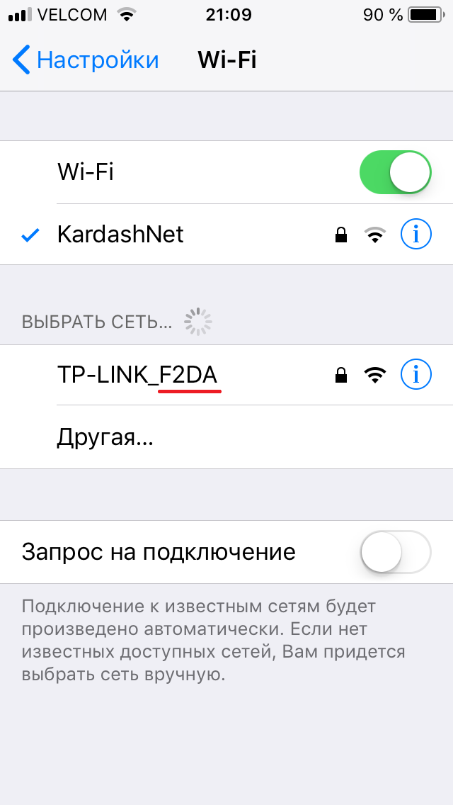 Apple iPhone WPS не поддерживают так что нам остаётся только выбрать сеть для подклюения и ввести пароль: